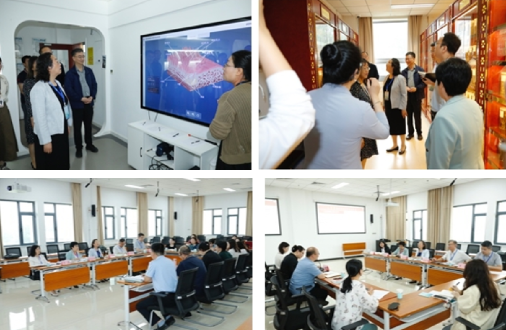 5月23日,党委副书记张继旺,第一临床医学院教授赵吉平,国家中医药高等教育研究院副院长焦楠一组赴第二临床医学院(东方医院)听取工作汇报,召开院领导班子、教师、学生座谈会,走访教研室,考察智慧教室、实训中心、医院特色设施,选听线下课程,观摩科室教学查房。